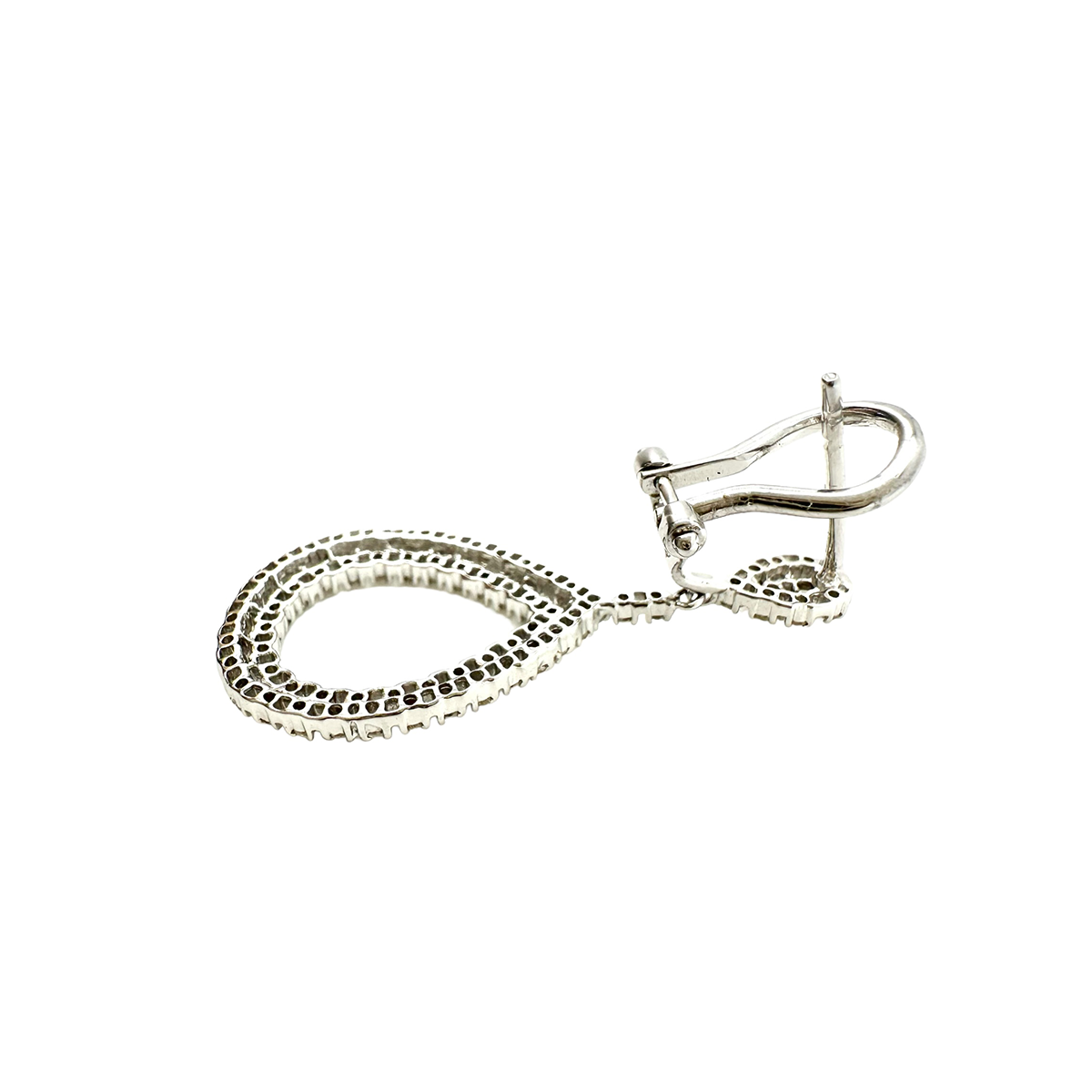 Elegance and brilliance converge in the MARTINELA Diamond Teardrop Earrings. These stunning earrings feature a captivating teardrop design, meticulously crafted to enhance their luxurious appeal. Each earring is adorned with a dazzling array of pavé-set diamonds, creating a scintillating effect that radiates pure sophistication. Suspended from a diamond-encrusted stud, the teardrop-shaped dangle showcases an intricate lattice of sparkling diamonds, perfectly set to catch and reflect light from every angle. The white gold setting amplifies the brilliance of the diamonds, adding a touch of modern elegance to this timeless design.