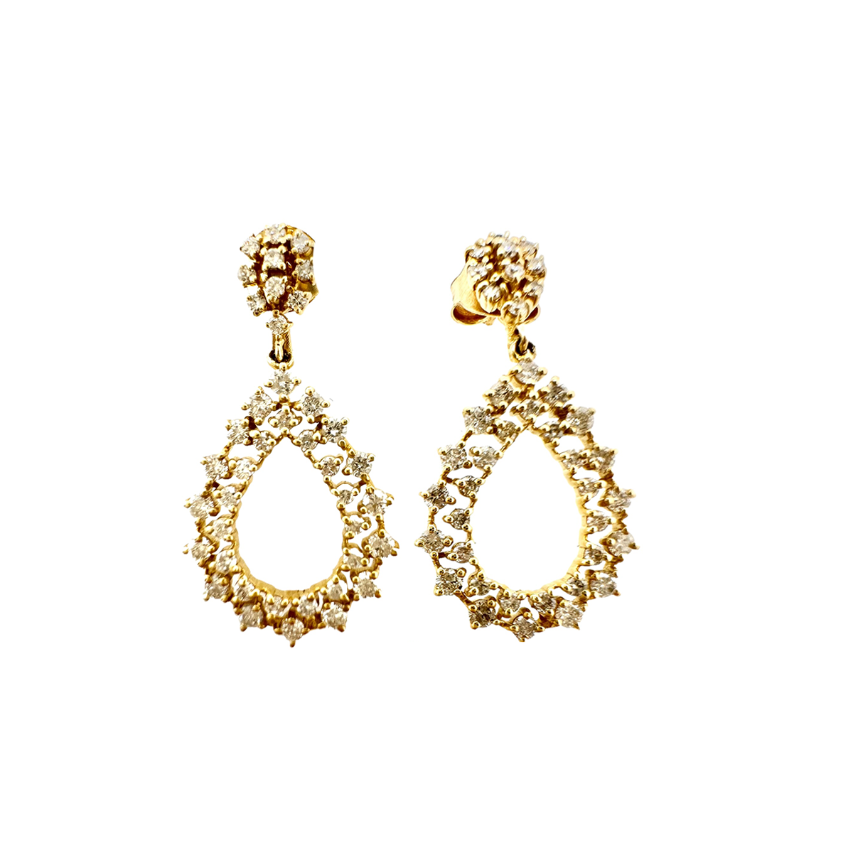Experience the epitome of elegance with the MARTINELA Diamond Teardrop Earrings. These breathtaking earrings feature an intricate teardrop design, meticulously crafted to reflect timeless sophistication. Each earring is adorned with pavé-set diamonds, expertly arranged to catch and reflect light, creating a dazzling display of brilliance. Suspended from a diamond-encrusted stud, the teardrop dangle is framed with a delicate lattice of sparkling diamonds, enhancing the overall radiance. The luxurious yellow gold setting adds warmth and modern elegance to this classic design.