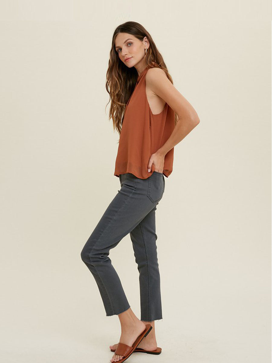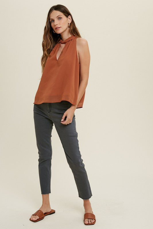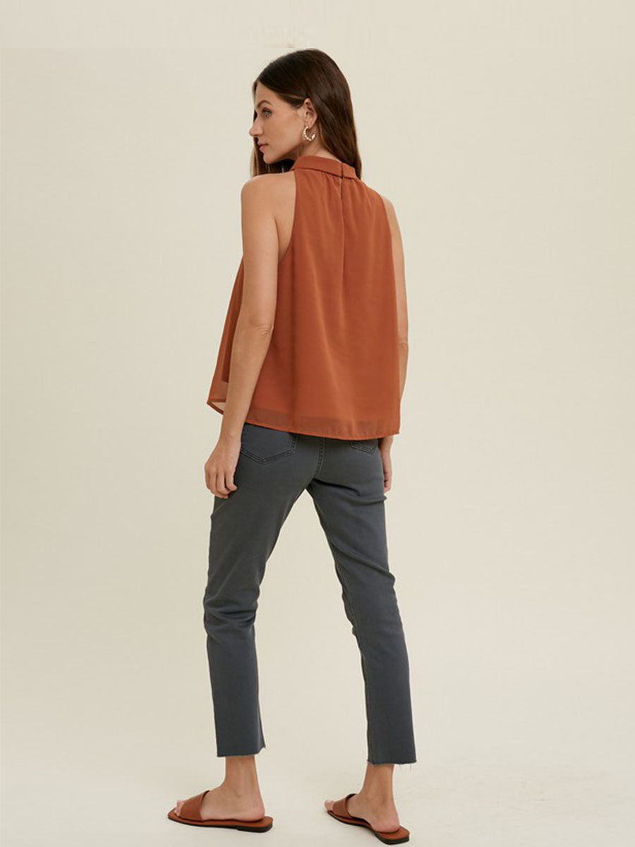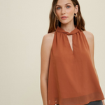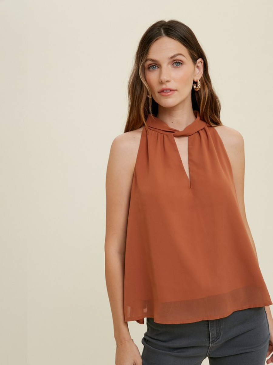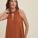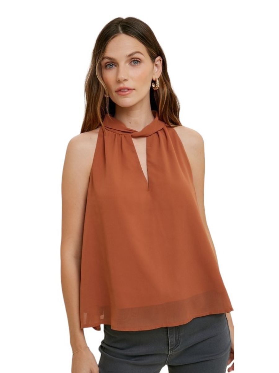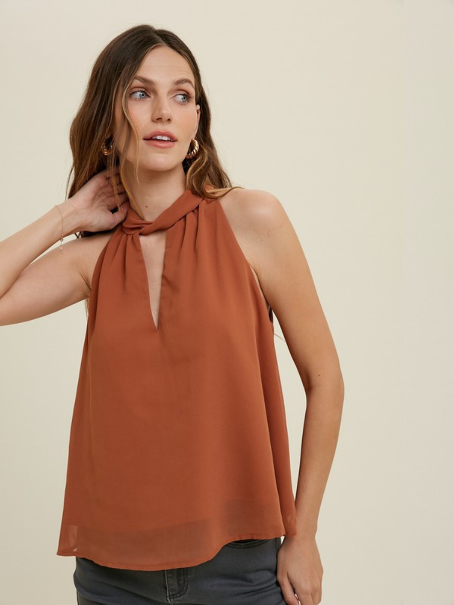 EARTHY RUST HALTER-NECK BLOUSE VIOLA FOR A TOUCH OF ELEGANCE - BROWN