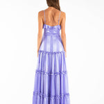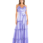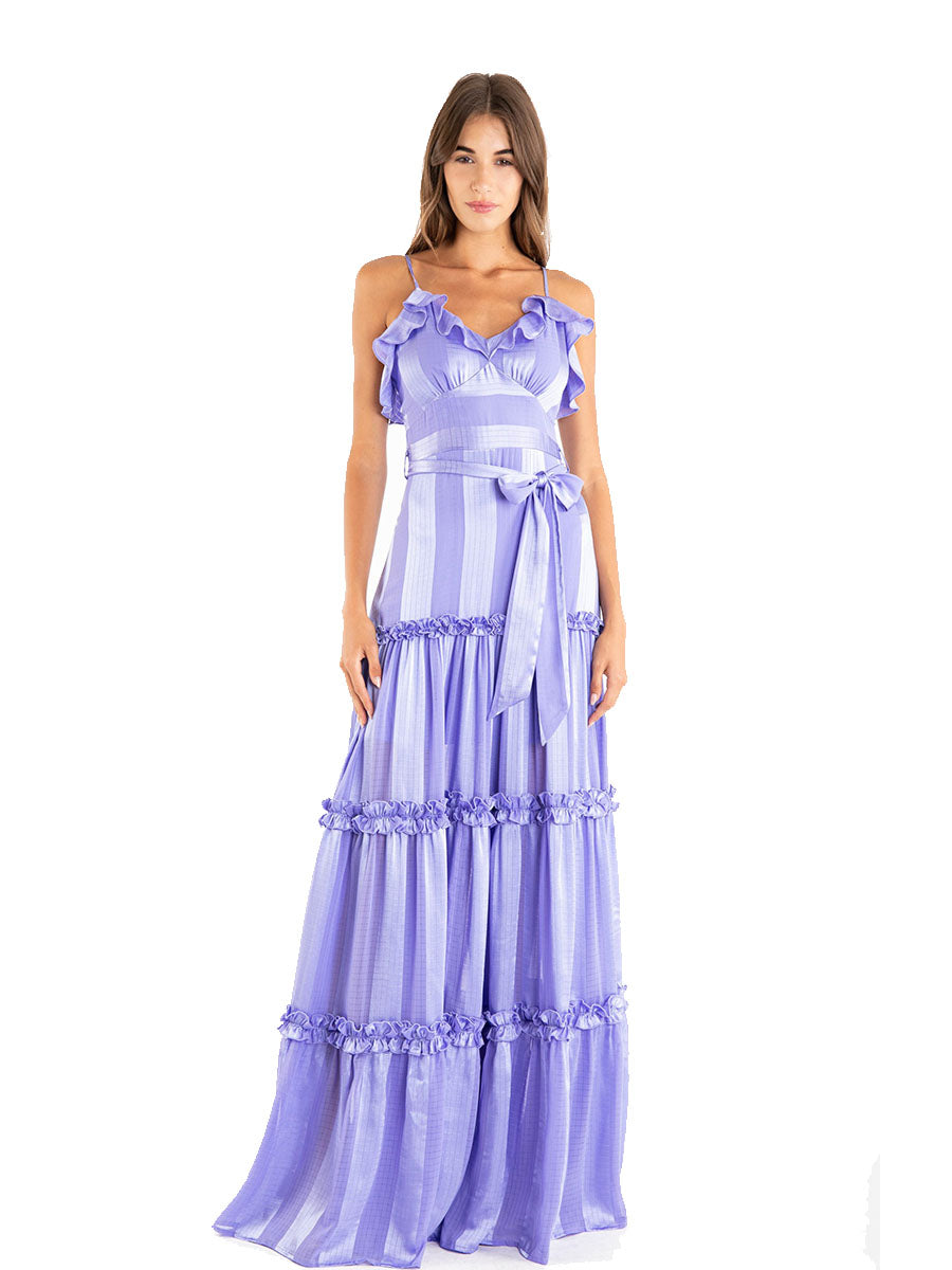 LAVENDER LILAC WHISPERS SATIN STRIPE LONG MAXI DRESS ELIZABETH - POETIC CHARM FOR WOMEN