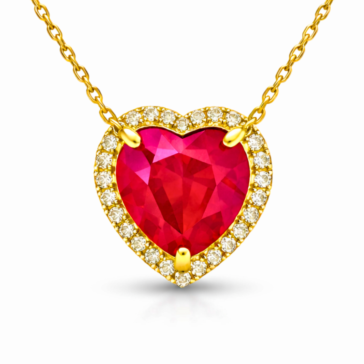 Baguette and Diamond Heart Pendant Necklace (Yellow Gold)