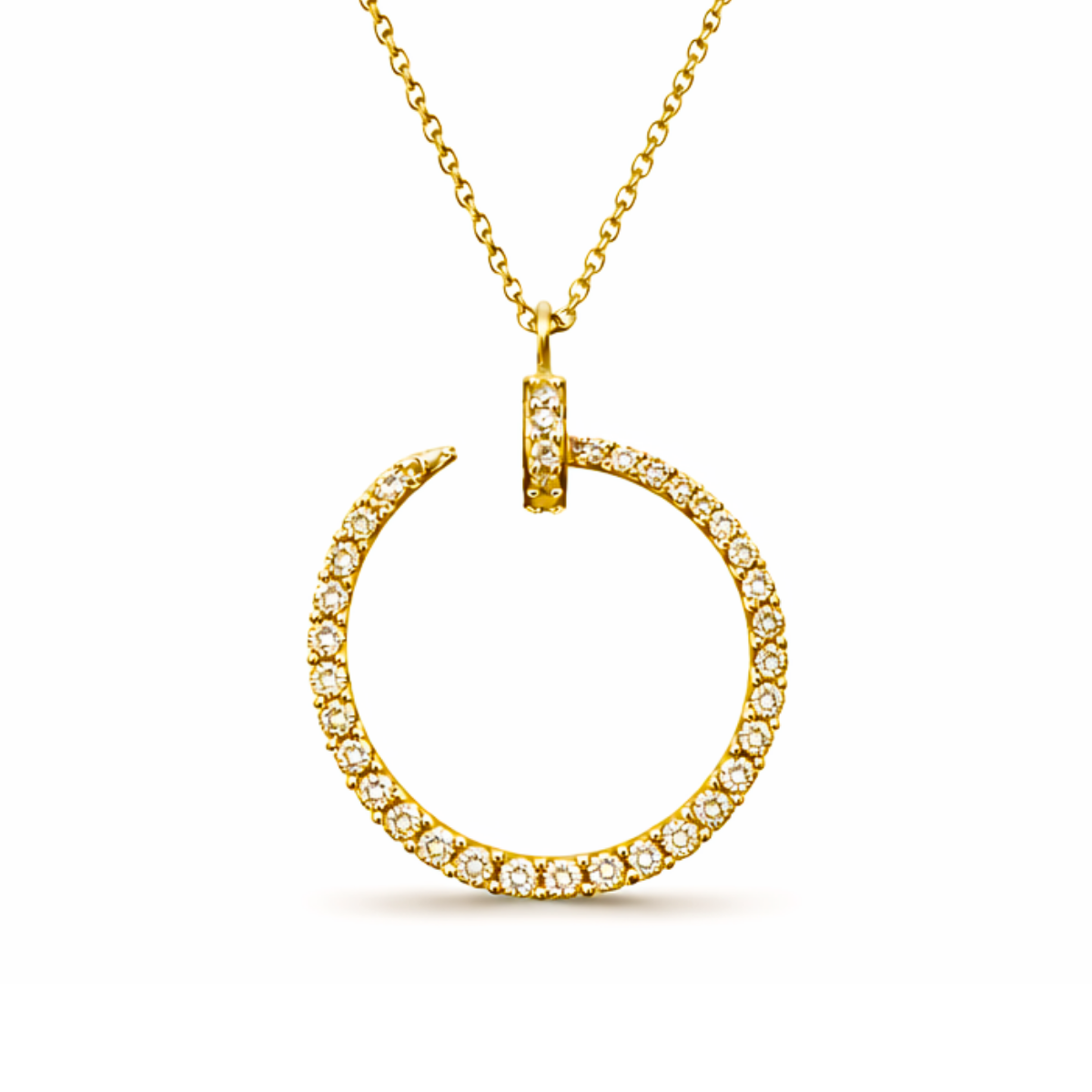 Elevate your style with the MARTINELA Diamond Nail Pendant Necklace, an exquisite piece that seamlessly blends modern design with timeless elegance. Crafted with meticulous attention to detail, this pendant features a unique nail-inspired shape adorned with sparkling diamonds, creating a captivating interplay of light and form. The pendant is set in lustrous yellow gold, enhancing the brilliance of each diamond and offering a fresh take on luxury jewelry. Its elegant, adjustable chain allows for a customized length to ensure a perfect fit and versatile styling options.