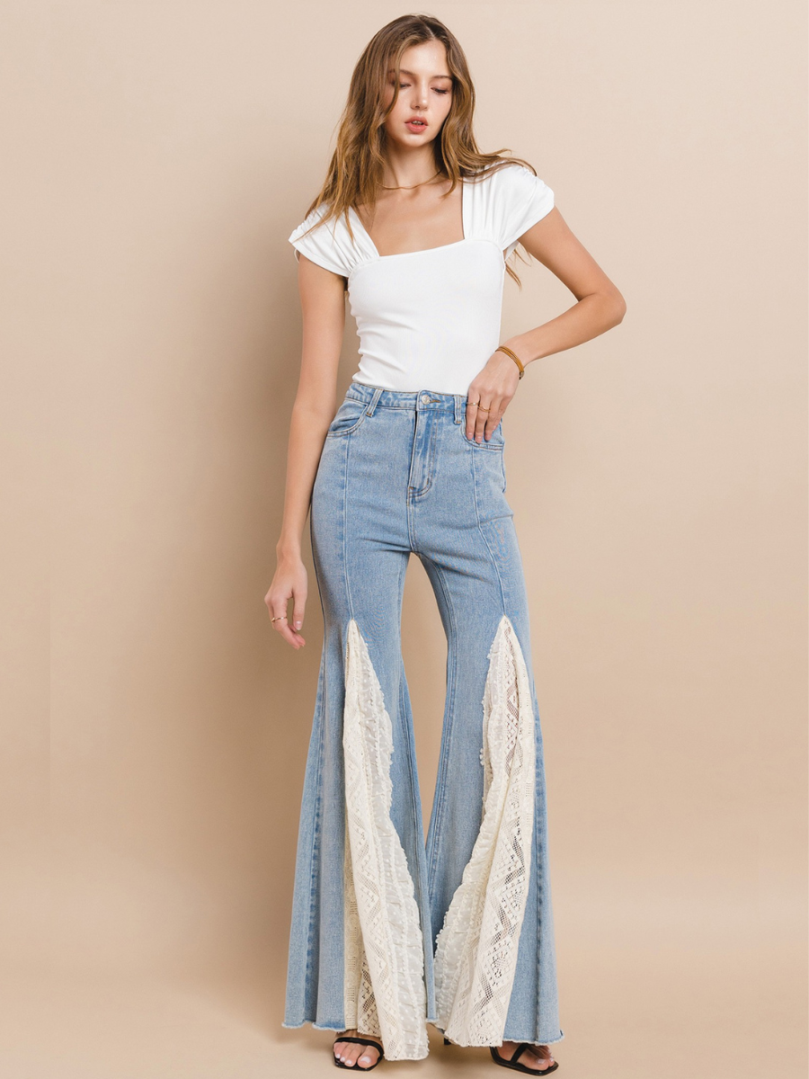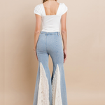 BOHO-CHIC LACE INSET FLARE JEANS GIORGIA IN TIMELESS BLUE FOR WOMEN